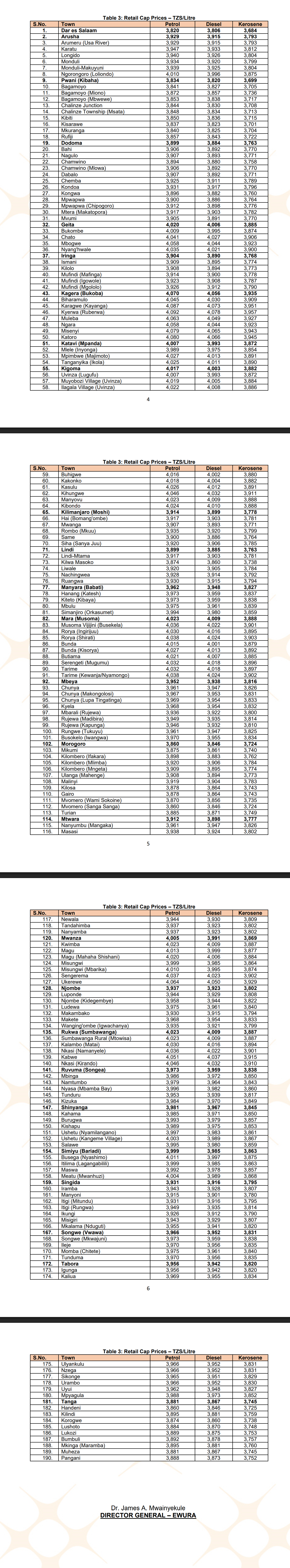 According to a public notice issued on Wednesday by the Energy and Water Utilities Regulatory Authority (Ewura), the latest adjustments reflect sustained pressure in global oil markets, compounded by exchange rate volatility.
