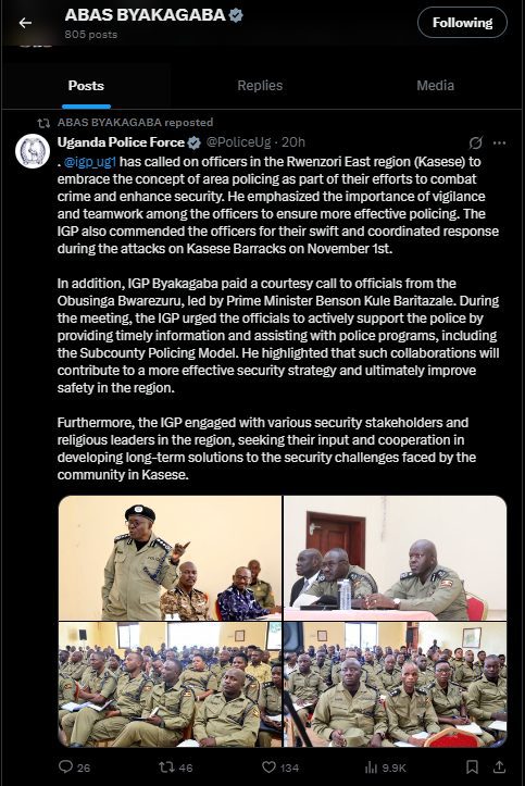Inspector General of Police (IGP), Abbas Byakagaba, has called on officers in the Rwenzori East region (Kasese) to embrace the concept of area policing as part of their efforts to combat crime and enhance security.