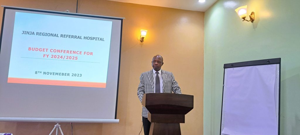 Hospital Director, Dr. Yayi Alfred delivering opening remarks during Budget Conference FY2024/2025