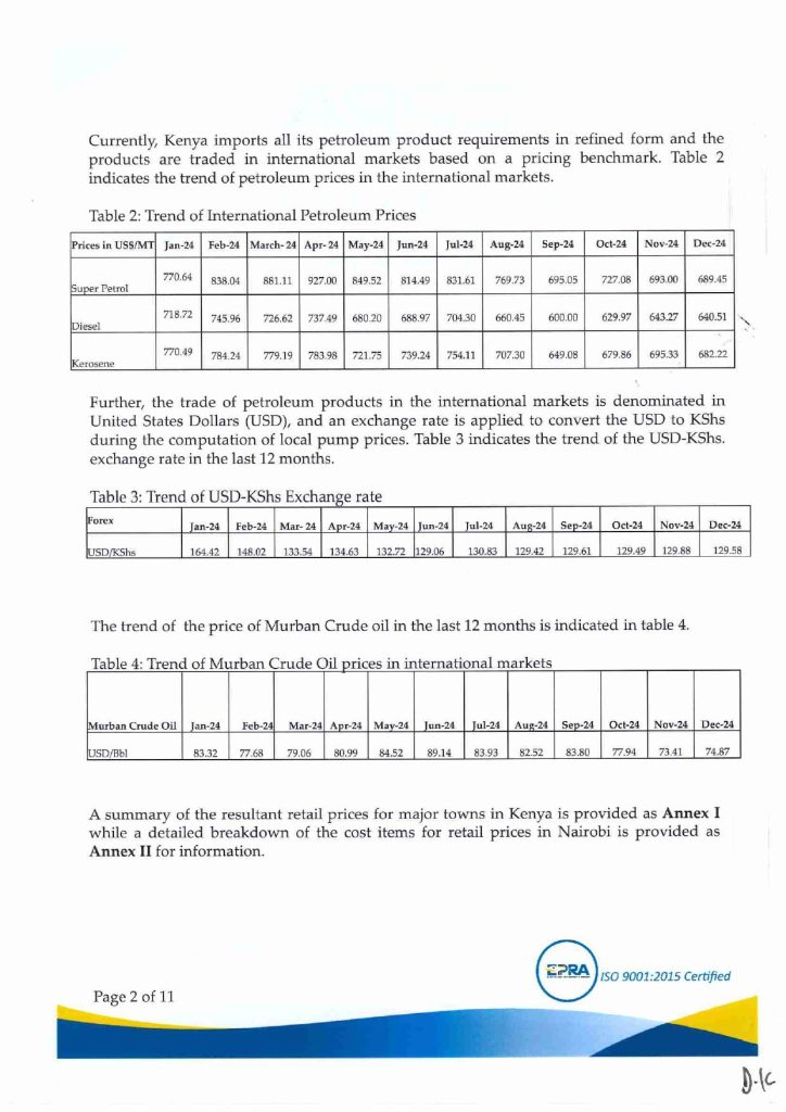 “The prices are inclusive of the 16% Value Added Tax (VAT) in line with the provisions of the Finance Act 2023, the Tax Laws (Amendment) Act 2024 and the revised rates for excise duty adjusted for inflation as per Legal Notice No. 194 of 2020,” read the statement.
