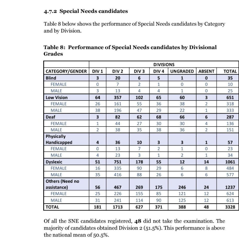 Prof. Celestino Obua, Uganda National Examinations Board (UNEB) chairperson says, “the results show that the 2024 SNE candidates have also done well, especially the category of the deaf candidates who had appeared most disadvantaged in the previous years”.